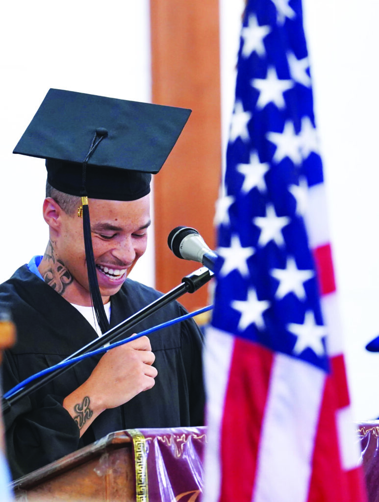 GED graduate Malickye Davis said he moved around a lot as a child and felt defeated when a teacher told him he would never amount to anything. He said his initial reason for signing up to complete his GED was to get time off his sentence, but gave credit to his instructor Ms. Lucas for seeing something in him that he said he had not seen in himself.