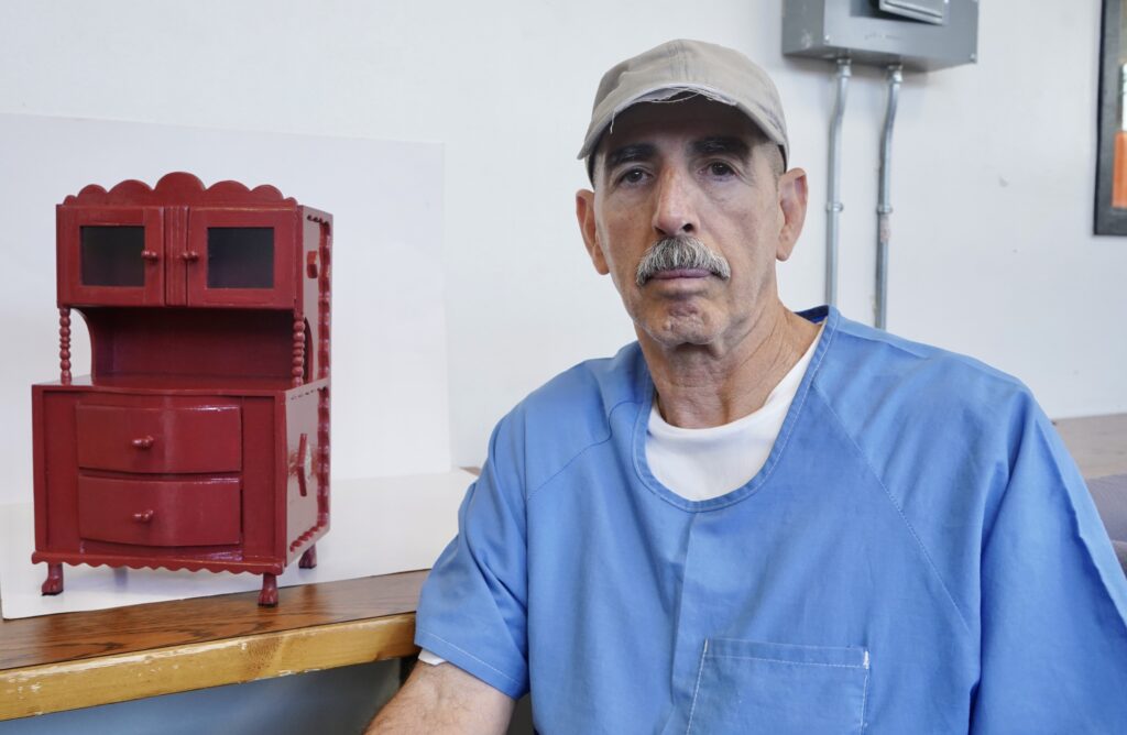 An incarcerated man creates miniature furniture by hand.