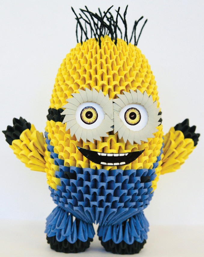 Besides the Minions, Cuevas also constructs picture frames and lunchmeat packs out of paper, and employs origami techniques to craft teddy bears holding roses.